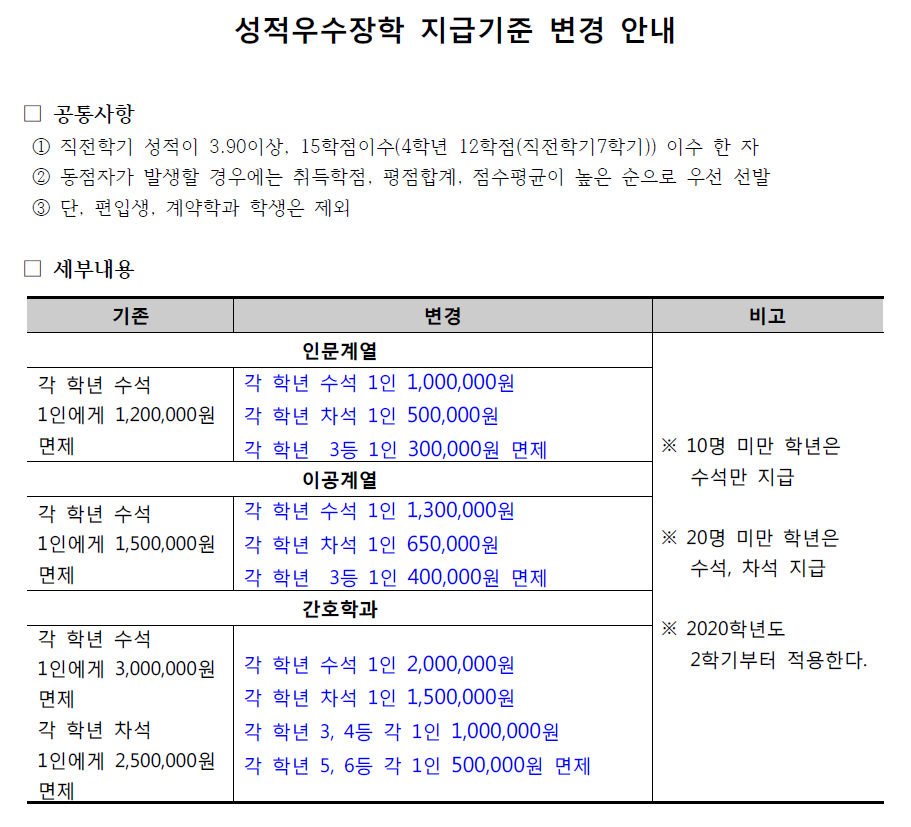 2020학년도 1학기 학기 중 국가근로장학(교내근로) 운영 변경사항 안내